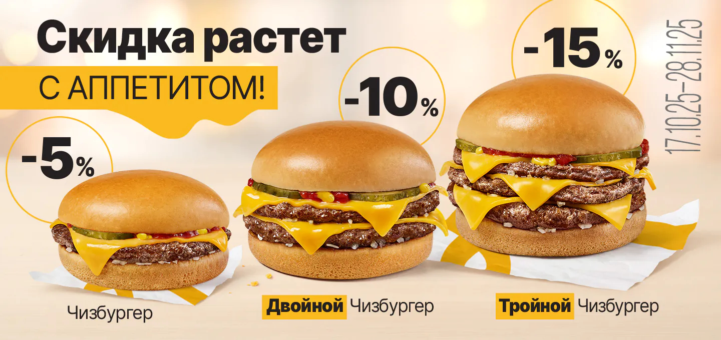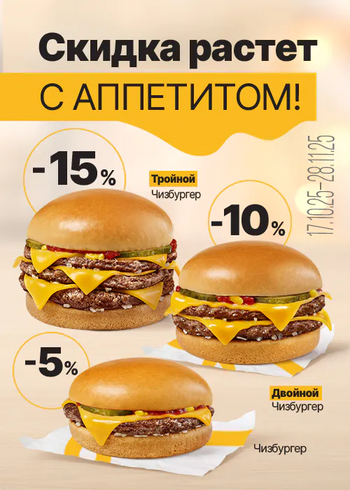 Скидка растет с аппетитом! Чизбургеры по специальной цене