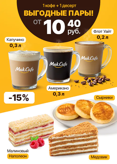 Пусть Выгодные пары сделают моменты в Mak.Cafe еще приятнее!