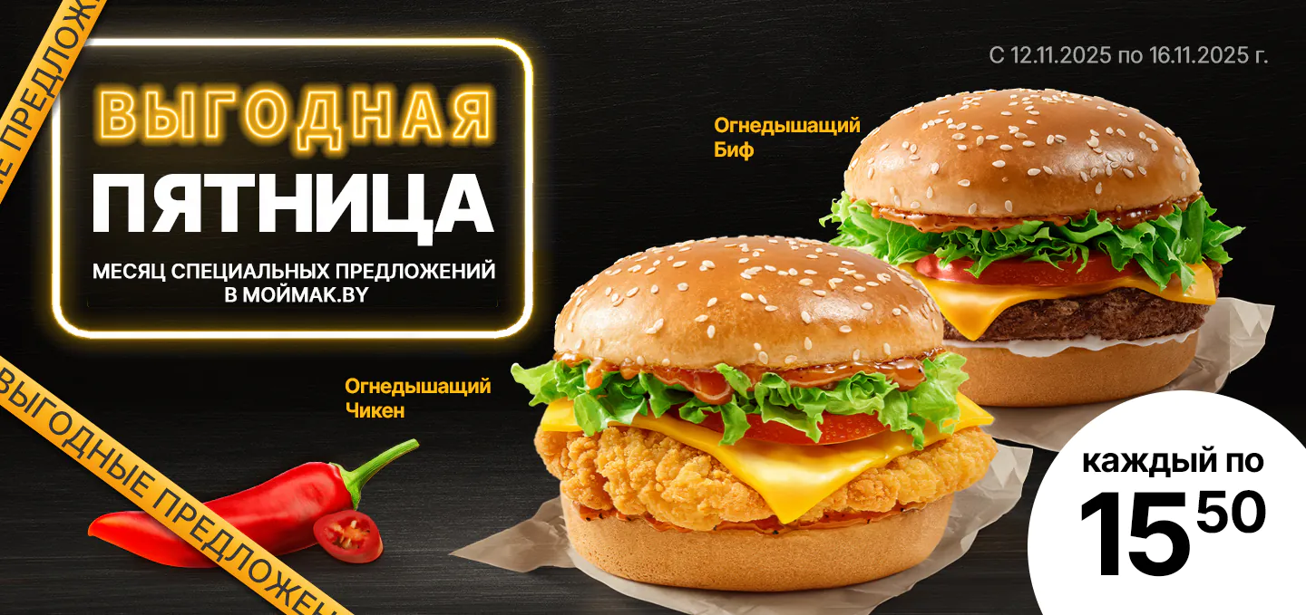 С 12 по 16 ноября только в мобильном приложении МойMak.by запускается линейка жгучих новинок: Огнедышащий Биф и Огнедышащий Чикен!